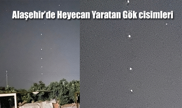 Alaşehir’de dün gece sıra sıra yükselen gök cisimleri heyecan yarattı. Dün gece saat 22.00 sıralarında Türkiye - İtalya kadınlar voleybol maçını bağ evinin bahçesinde izlerken, bir anda gök cisimlerinin arka arkaya gök yüzünde yükseldiğini gören ve şaşıran Alaşehir Ticaret ve Sanayi Odası başkanı Mustafa Seyhan hemen telefonu ile cisimlerin fotoğraflarını çekti.