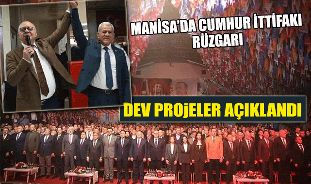 Yeni dönemde Manisa’ya çağ atlatacak projeler hayata geçireceklerini vurgulayan Başkan Ergün, “Yeni dönemde de gönül bağımızın eserlerini hayata geçireceğiz. Toplu konuttan ulaşıma, kentsel hizmetlerden spor tesislerine, otoparklardan pazar yerlerine, yeşil alanlardan sosyal yaşam projelerine, kentsel dönüşüm projelerinden afet yönetimine, kadın, erkek çocuk, yaşlı, genç, engelli hemşerilerimizin ihtiyaçlarına yanıt verecek çok sayıda projemizi hayata geçireceğiz” dedi. Manisa Büyükşehir Belediye Başkanı ve Cumhur İttifakı Manisa Büyükşehir Belediye Başkan Adayı Cengiz Ergün, Atatürk Spor Salonu’nda yeni dönem projelerinin tanıtım toplantısını gerçekleştirdi. ‘Gönül Bağımızın Eseri’ başlığıyla gerçekleştirilen proje tanıtım toplantısına MHP Grup Başkanvekili ve Manisa Milletvekili Erkan Akçay, AK Parti Manisa Milletvekilleri Murat Baybatur, Tamer Akkal, Başkan Ergün’ün eşi Şeyda Ergün, AK Parti İl Başkanı Salih Hızlı, MHP İl Başkanı Cüneyt Tosuner, AK Parti MKYK Üyeleri, MHP MYK Üyeleri, Manisa eski Milletvekili Semra Kaplan Kıvırcık, Cumhur İttifakı İlçe Belediye Başkan Adayları, Ülkü Ocakları İl Başkanı Emirhan Sallıtepe, Manisa Ticaret Borsası Başkanı Sadık Özkasap, Muradiye OSB Başkanı Osman Kıvırcık, MESOB Başkanı Hasan Geriter, AK Parti Gençlik Kolları, MHP KAÇEP ve AK Parti Kadın Kolları, AK Parti ve MHP İlçe Başkanları, sivil toplum kuruluşu temsilcileri, belediye meclis üyesi adayları, meslek odaları temsilcileri, mahalle muhtarları ve çok sayıda Manisalı katıldı. Başkan Ergün’ü aday tanıtım toplantısında Büyükşehir ve MASKİ kurmayları ile çalışanları da yalnız bırakmadı. ALAŞEHİR PROJELERİ ANLATILDI 2024-2029 Manisa Büyükşehir Belediyesi Proje Tanıtım Toplantısına Cumhur İttifakı'nın Alaşehir Belediye Başkan Adayı Necdet Türk'te katıldı. Tanıtım toplantısında Alaşehir'de yapılacak projelere de değinildi. İşte yapımı planlanan projeler; ALAŞEHİR HALİ ALAŞEHİR İTFAİYE BİNASI  ÇOCUK GÜNDÜZ BAKIM EVİ KREŞ PROJESİ ALAŞEHİR ÇELİK İÇME SUYU İSALE HATTI PROJESİ ALAŞEHİR İLÇESİ BAHADIR MAHALLESİ YENİ İÇME SUYU HATTI PROJESİ ALAŞEHİR ULUDERBENT MAHALLESİ ATIKSU ARITMA TESİSİ İLÇEDE YENİ İÇME SUYU DEPOLARI, İÇME SUYU ARITMA TESİSLERİ İLE UZAKTAN İZLEME VE KONTROL (SCADA) SİSTEMLERİ YENİLENEBİLİR ENERJİ KAYNAKLARININ ÇEŞİTLENDİRİLMESİ PROJESİ DERE ISLAH, TEMİZLİK VE TAŞKIN KORUMA PROJELERİ ALTYAPI VE ÜSTYAPI YATIRIMLARI (MASKİ GENEL MÜDÜRLÜĞÜ) ÜRETİCİ KOOPERATİFLERİNİN DESTEKLENMESİ PROJESİ ÇİFTÇİLERİMİZE SULAMA DESTEĞİ PROJESİ HAYVAN İÇME SUYU GÖLETLERİ YAPIMI PROJESİ BÜYÜKBAŞ VE KÜÇÜKBAŞ HAYVANCILIKLA İLGİLİ DESTEKLEME PROJELERİ ORTAK MAKİNE PARKI PROJESİ GÜBRE DESTEĞİ PROJESİ TOHUM DESTEĞİ PROJESİ FİDAN DESTEĞİ PROJESİ ZEYTİN KASASI DESTEĞİ PROJESİ KELTER DESTEĞİ PROJESİ HASAT ÖRTÜSÜ DESTEĞİ PROJESİ ÖRTÜ ALTI YETİŞTİRİCİLİĞİNİN DESTEKLENMESİ PROJESİ TARIMDA GÜLEN YÜZLER UYGULAMALI EĞİTİM MERKEZİ PROJESİ ARICILIK EĞİTİM VE ANA ARI ÜRETİM MERKEZİ KAPASİTESİNİN ARTTIRILMASI PROJESİ BİYOLOJİK VE BİYOTEKNİK MÜCADELENİN YAYGINLAŞTIRILMASI PROJESİ İHTİYAÇ SAHİPLERİNE YÖNELİK DESTEK PROJELERİ gibi bir çok sayıda projenin önümüzdeki dönemde Alaşehir'de yapılacağı duyuruldu.  “CUMHUR İTTİFAKININ ZAFERİNİN MÜJDESİNİ VERECEĞİZ” 31 Mart Mahalli İdareler Seçimlerini kazanacaklarını vurgulayan Başkan Ergün, “Desteklerinizle Manisa’mızın geleceği için hep birlikte çalışmaya devam edeceğimizi vurgulamak istiyorum. Şanlı Cumhuriyetimizin 100. yılında ülkemizi ve Manisa’mızı daha da ileriye taşıyacağız. Allah’ın izniyle 31 Mart’ta Büyükşehirle birlikte 17 ilçemizde belediye başkanlıklarını kazanacağız ve Cumhurbaşkanımız Sayın Recep Tayyip Erdoğan’la Bilge Liderimiz Sayın Devlet Bahçeli’ye; Cumhur İttifakı’nın zaferinin müjdesini vereceğiz” dedi.