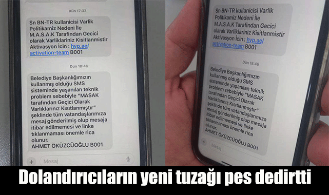 Alaşehir Belediyesi tarafından binlerce kişiye çekilen “Varlık Politamız Nedeni İle MASAK tarafından Geçici Olarak Varlıklarınız Kısıtlanmıştır” mesajı vatandaşlar tarafından şaşkınlık ile karşılandı. Gerçek ise geç olamadan anlaşıldı. Mesajın, belediyeye toplu mesaj hizmeti sağlayan firmanın sistemine sızmayı başaran dolandırıcılar tarafından çekildiği tespit edilirken, konu ile ilgili hukuki işlem başlatıldı.