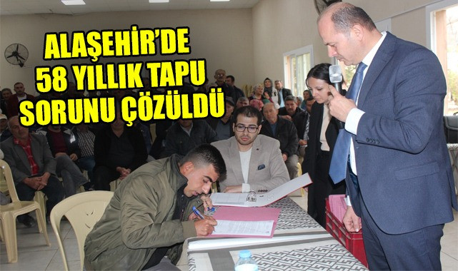 Alaşehir'de 58 yıldır çözülemeyen 2/b arazisi hak sahibi 5 bin 500 vatandaşın sorunu çözüme kavuşturuldu. 58 yıl sonra tapularına kavuşacak olan vatandaşlar büyük bir sevinç yaşadı.