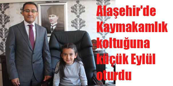 23 Nisan Ulusal Egemenlik ve Çocuk Bayramı etkinlikleri kapsamında Kaymakamlıkta temsili devir teslim töreni düzenlendi. Alaşehir Kaymakamı Abdullah Uçgun, görevini temsili olarak, Yıldırım Beyazıt İlkokulu'ndan gelen 4. sınıf öğrencilerinden Eylül Çavuşoğlu'na bıraktı. Küçük Kaymakam Eylül Çavuşoğlu koltuğu oturmasının ardından ilk olarak Alaşehir'in güzel bir yer olduğunu belirtip, "Bu nedenle güzelleştirmeye ihtiyacı yok. Ancak, biz yine de Alaşehir'e en iyi hizmetleri vermek için çalışacağız."dedi. Daha sonra öğretmen olan annesi Hülya Çavuşoğlu'nu arayan küçük kaymakam Çavuşoğlu, "Anne, ben artık kaymakam oldum. İlk fırsatta sizi buraya bekliyorum."diye konuştu.