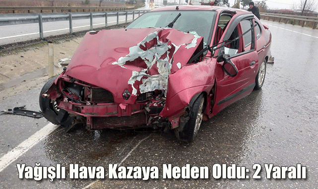 Alaşehir'de yağışlı hava kazaya neden oldu. Kontrolden çıkan otomobil bariyerlere çarptı. Kazada 2 kişi yaralandı.