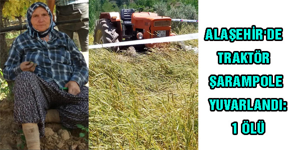 Alaşehir'in Çarıkbozdağ Mahallesi'nde saat 11.30 sıralarında, Çeşmegedik mevkiindeki arazilerine çalışmaya giden İsmail Akpınar (60) idaresindeki 45 ZY 683 plakalı traktör, sürücüsünün direksiyon hakimiyetini kaybetmesi sonucu şarampole takla atarak yuvarlandı. Traktörde bulunan İsmail Akpınar'ın eşi, 3 çocuk annesi Kezban Akpınar (59) takla atan traktörün altında kalarak hayatını kaybetti. Kazada yaralanan İsmail Akpınar Alaşehir Devlet Hastanesi’nde tedavi altına alındı. Jandarmanın kazayla ilgili soruşturmasının devam ettiği öğrenildi.