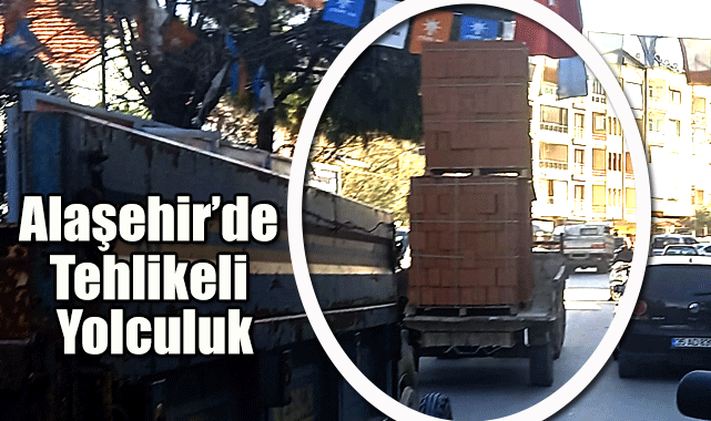 Alaşehir’de tuğla yüküyle trafikte ilerleyen traktörün tehlikeli yolculuğu kameralara yansıdı. Yüksek istiflenen tuğla yükünün kayma ihtimaliyle trafikte tehlike oluşturan traktör, diğer araç sürücülerini tedirgin etti.