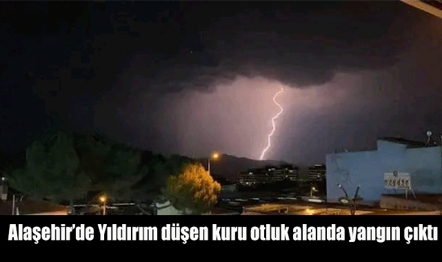 Alaşehir’de yıldırımın düştüğü otluk boş arazide yangın çıktı.