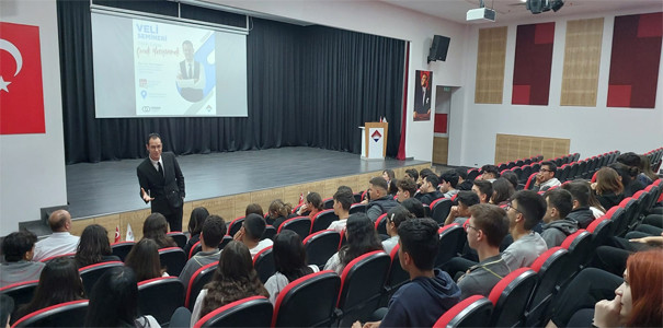 Yavuz Samur seminerde, teknoloji kullanımı, ekran süresi ve ekran/teknoloji bağımlılığı konusunda öğrenci ve velilerle farkındalık sağlayıcı önemli bilgiler paylaştı. Samur, “Yasaklar yok, sınırlamalar var. Bunun için uygulamalar var, bunları kullanıp ekran sürenizi kontrol altına alabilirsiniz” diyerek bireysel kontrolün önemine vurgu yaptı.