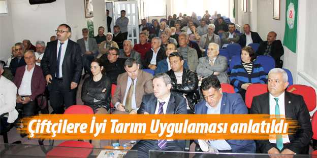 Konferansta İlçe Gıda Tarım ve Hayvancılık Müdürlüğü Görevlisi Tarım Danışmanı Davut Kanal tarafından katılımcılara İyi Tarım Uygulamaları hakkında görsel desteklerle ayrıntılı bilgiler verildi. Kanal yaptığı bilgilendirmede İyi Tarım Uygulamaları için gereken evraklar, kurulması gereken gerekli alt yapı ve İyi Tarım Uygulaması yapan çiftçilerin yararlandığı Çevre Amaçlı Tarım Arazilerini Koruma Programı (ÇATAK) ve İyi Tarım destekleri hakkında üreticileri aydınlattı.