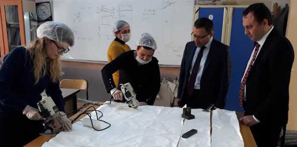 Alaşehir Şehit Efkan Mesleki ve Teknik Anadolu Lisesi’nde görevli 2 müdür yardımcısı, 1 öğretmen, 8 öğrenci, 1 güvenlik görevlisi ve 1 Halk Eğitim Merkezi kursiyeri olmak üzere 13 yardımsever her gün okula gelerek, Moda Tasarım dikiş nakış atölyesinde maske üretimi yapıyorlar.