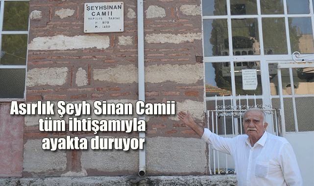 Şeyh Sinan Mahallesi'nin 45 yıllık muhtarı Mustafa Yılmaz caminin, Alaşehir' in Osmanlı topraklarına katılmasıyla, buraya yerleşmeye karar kılan ve fatihlerden olduğu anlaşılan, Mahmut Fakih oğlu ve Bursa' da mefdun Emir Sultan halifesi Şeyh Sinan tarafından yaptırıldığını belirtti. Şeyh Sinan camiinin avlusunda bulunan türbenin ise, 1465 yılında yapıldığını belirterek; " Şeyh Sinan Camii, Osmanlı sanatının ilk dönemlerinde olduğu gibi çok kubbeli ulu cami tipinde ele alınmış. Asıl mekân 6 kubbe ile son cemaat mahali 3 kubbe ile örtülüdür. Kubbelerin kurşunla kaplı olduğu bilinmektedir. Tarihi ve sanat değeri olan bu camiinin zaviye ve kütüphanesi yangın sonucunda yıkılmıştır" dedi.