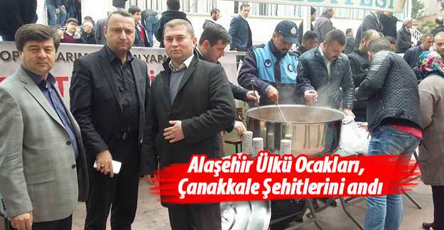 Alaşehir Ülkü Ocakları Başkanı Hakan Turan, "Çanakkale şehitlerimizi anmak için bir program düzenledik. Şehitlerimiz için Ocak'ta Yasin-i Şerif okuduk. Cuma namazı sonrası da vatandaşlarımıza Çanakkale Savaşlarında Mehmetçiklerimizin menüsü olan üzüm hoşafı ikram ettik. Aziz vatanımız ve milletimiz için canlarını feda ederek toprağa düşen aziz şehitlerimiz rahmet ve minnetle anıyoruz. Ruhları şâd olsun" dedi.