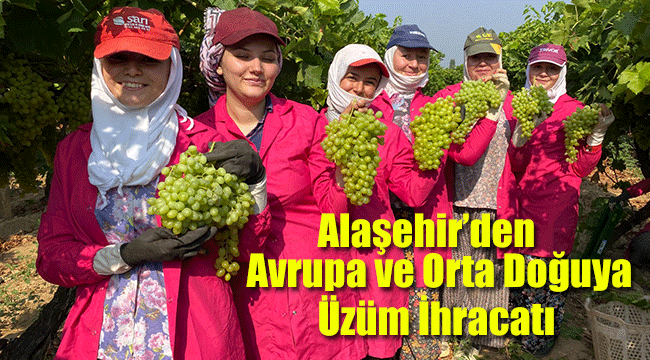 Alaşehir'de yetiştirilen ve yapılan hasadın ardından üzüm işleme tesisinde paketlenen çekirdeksiz Sultaniye üzüm TIR'larla, Ege Yaş Sebze ve Meyve İhracatçıları Birliği tarafından düzenlenen törenle Avrupa ve Orta Doğu ülkelerine ihracatı yapılmak üzere yola çıktı.