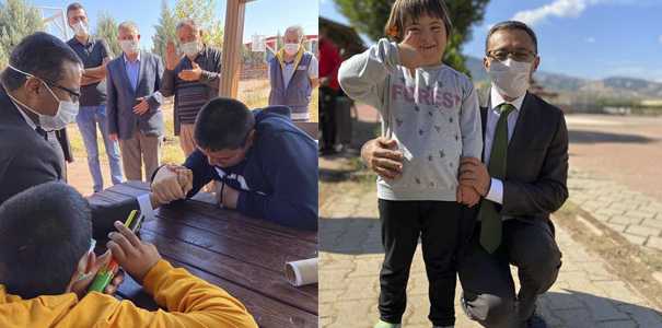 Kaymakam Abdullah Uçgun, "Bugün özel çocuklarımızı ziyaret ettik. Özel öğrencilerimizin ders içi etkinliklerine katıldık. Özel öğrencilerimizle birlikte çok güzel zaman geçirdik ve çok mutlu oldum. Okul yönetici ve öğretmenlerimizi tebrik ediyorum. Çalışmalarında başarılar diliyorum." dedi.